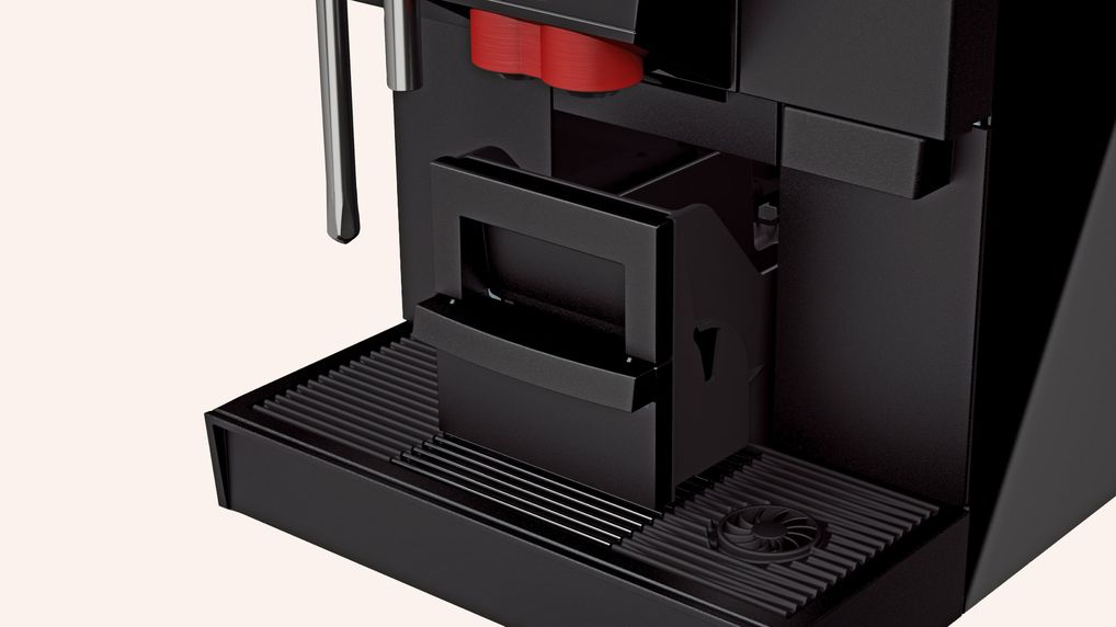 Fold-out cup tray integrated into the grounds disposal unit.